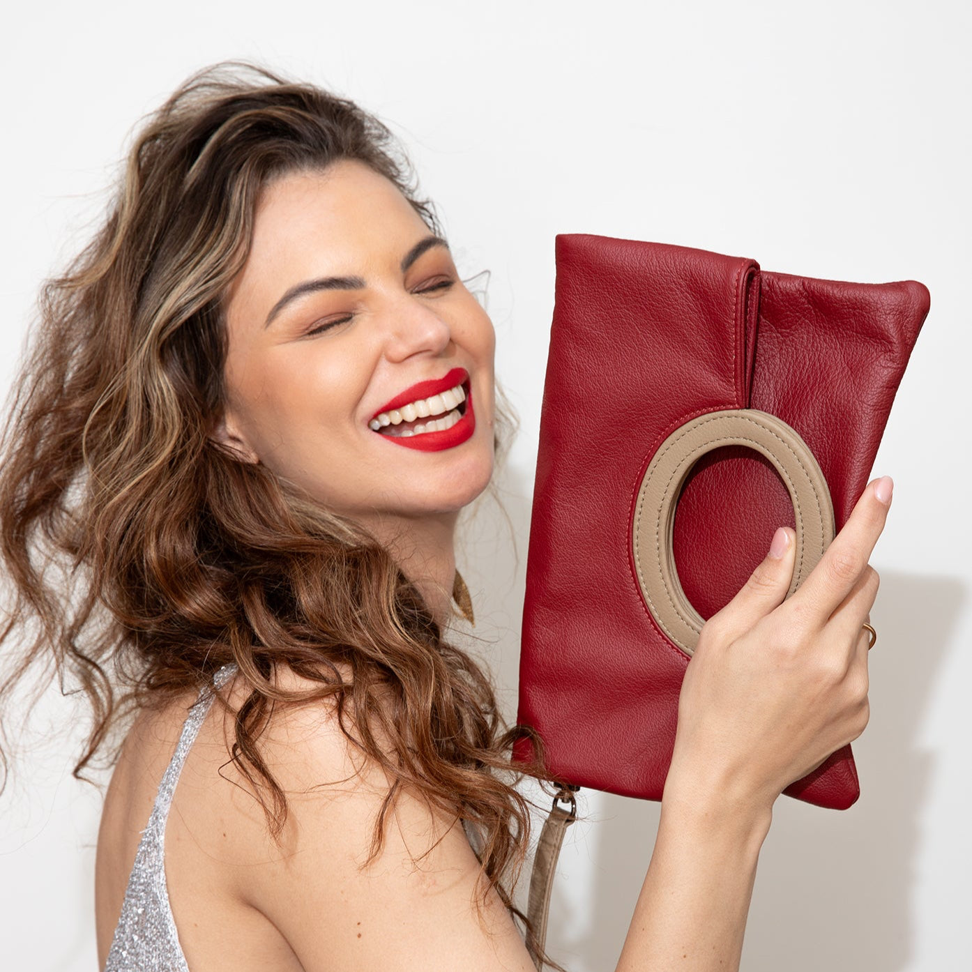 Make your entrance wearing an elegant leather clutch. When you need your hands free to hold champagne and canapés, hold the clutch on your wrist. Then, wear it across your body, open or folded, as you dance the night away. The clutches are very lightweight. You can dress them up for a party or down with jeans and flats, day or night.