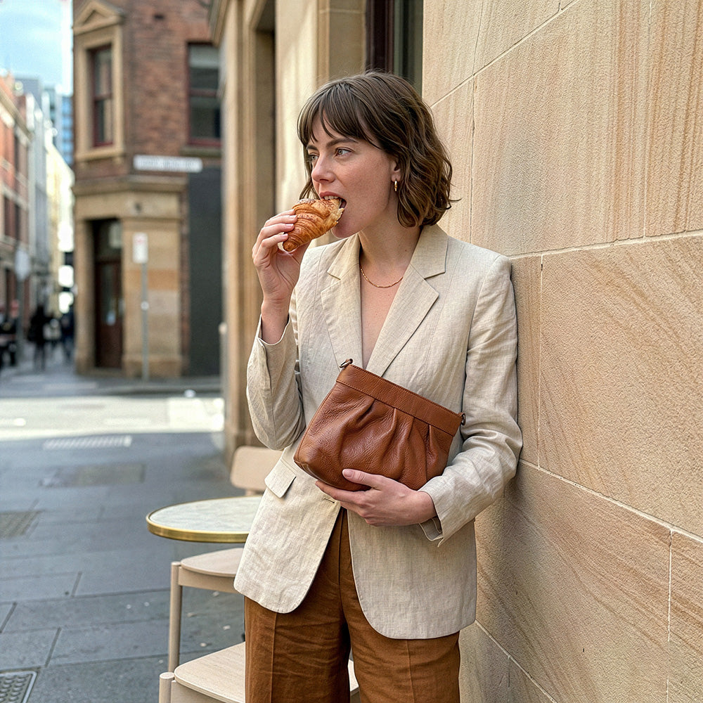 Handcrafted in Sydney by skilled artisans, it's made with the finest full-grain leather, offering luxurious softness and features a beautiful printed cotton lining.